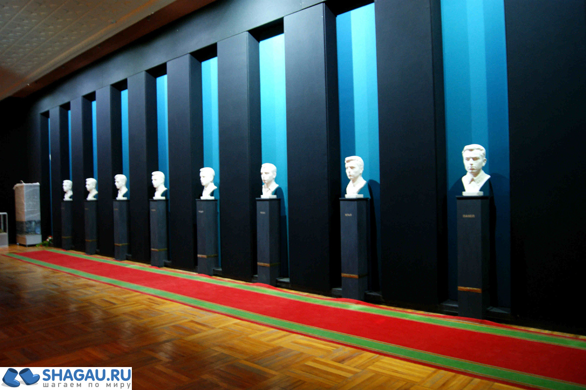 В центре зала находится также экспозиция, посвященная всем героям города, павшим в войне, а у другой стены выставлены бюсты всех братьев Степановых. Завершается экспозиция макетом подворья, где жила семья. Туда мы тоже съездили, об этом расскажу ниже.