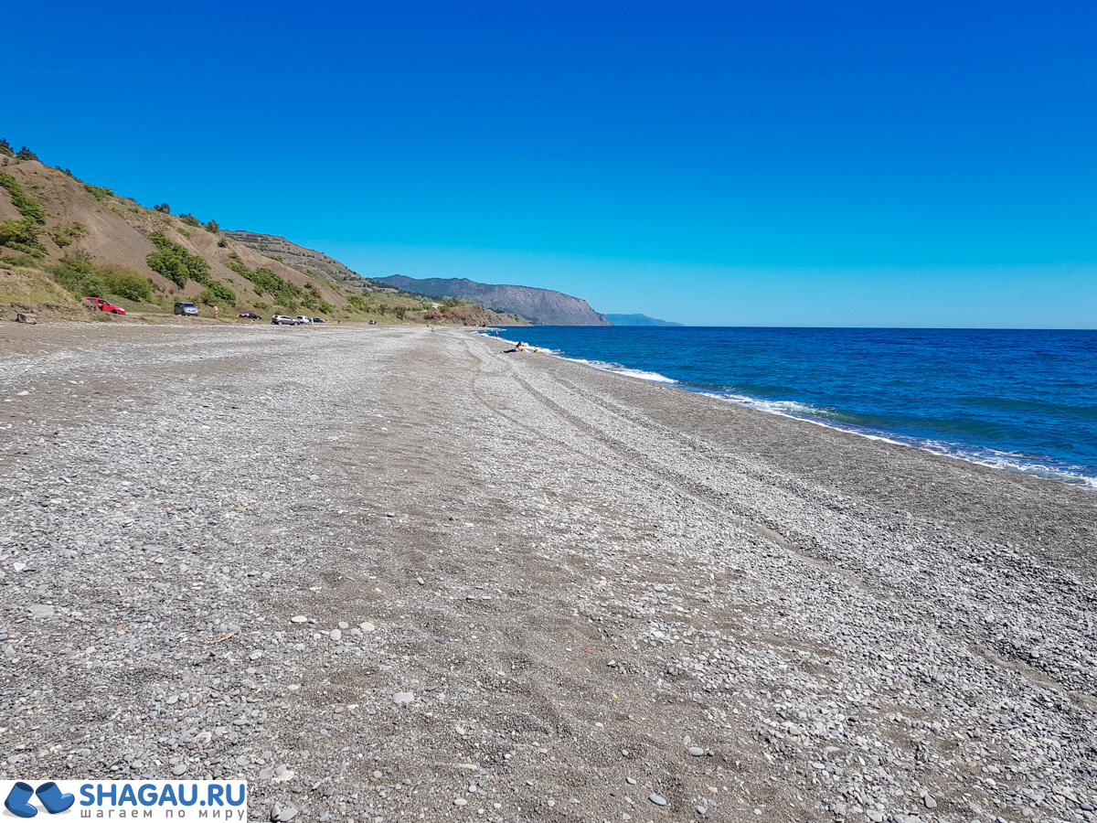 После плотного обеда клонит в сон, поэтому не смогли удержаться от заезда на пляж в поселке Морское, тем более он находится вдоль трассы, и на него можно съехать на машине.