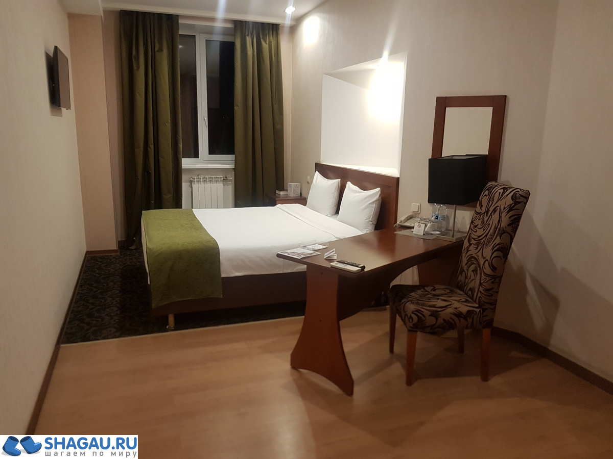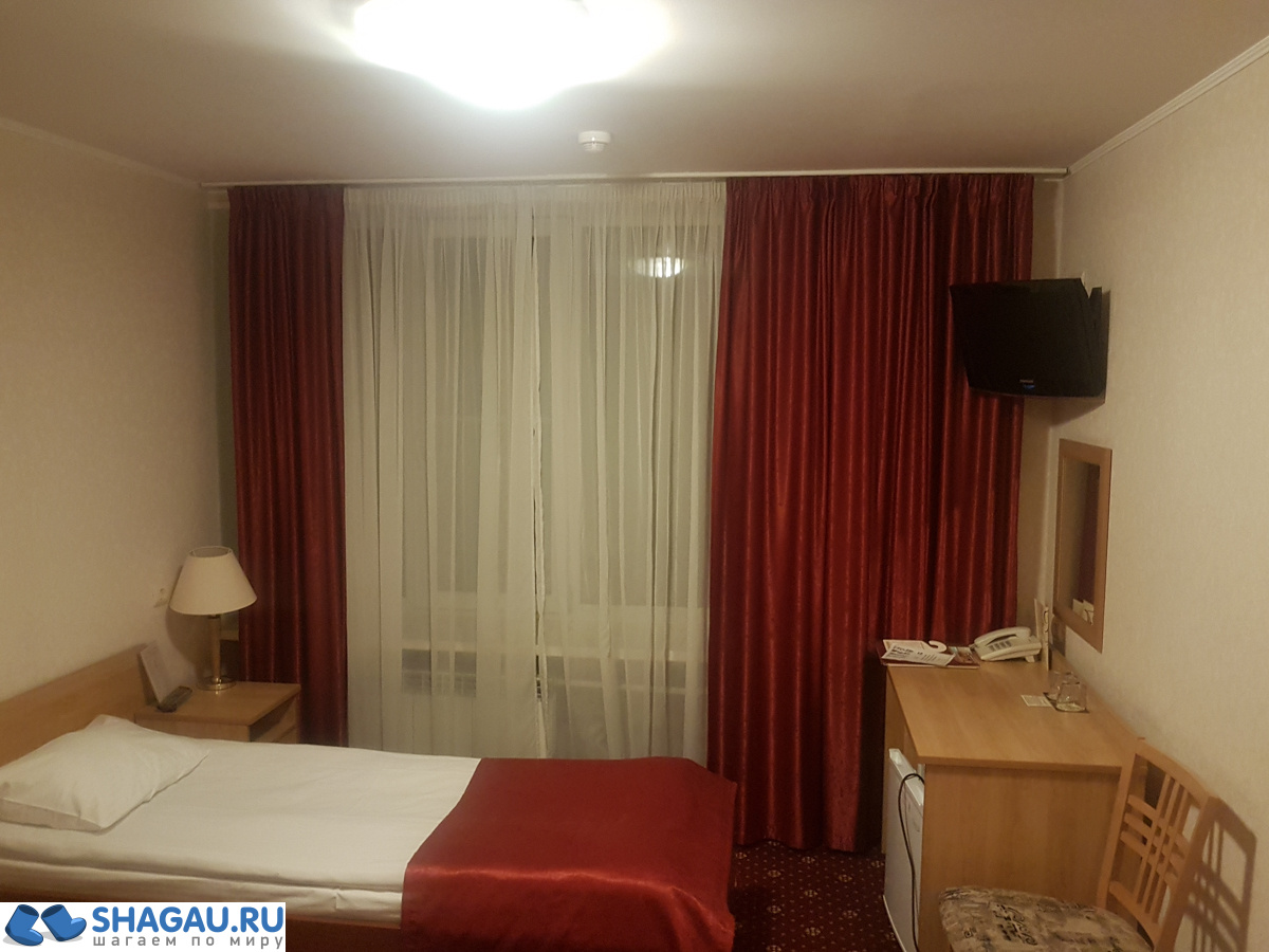 Все уже довольно старое, красные ковры, специфический отельный запах. Кондиционера нет, зато есть батареи, что актуально зимой. Не скажу, что прям ужас, ужас, но, например, больше 2500 р. за ночь я бы за такой отель не заплатила. Тем не менее мы приняли долгожданный горячий душ, выспались, мне понравились подушки.