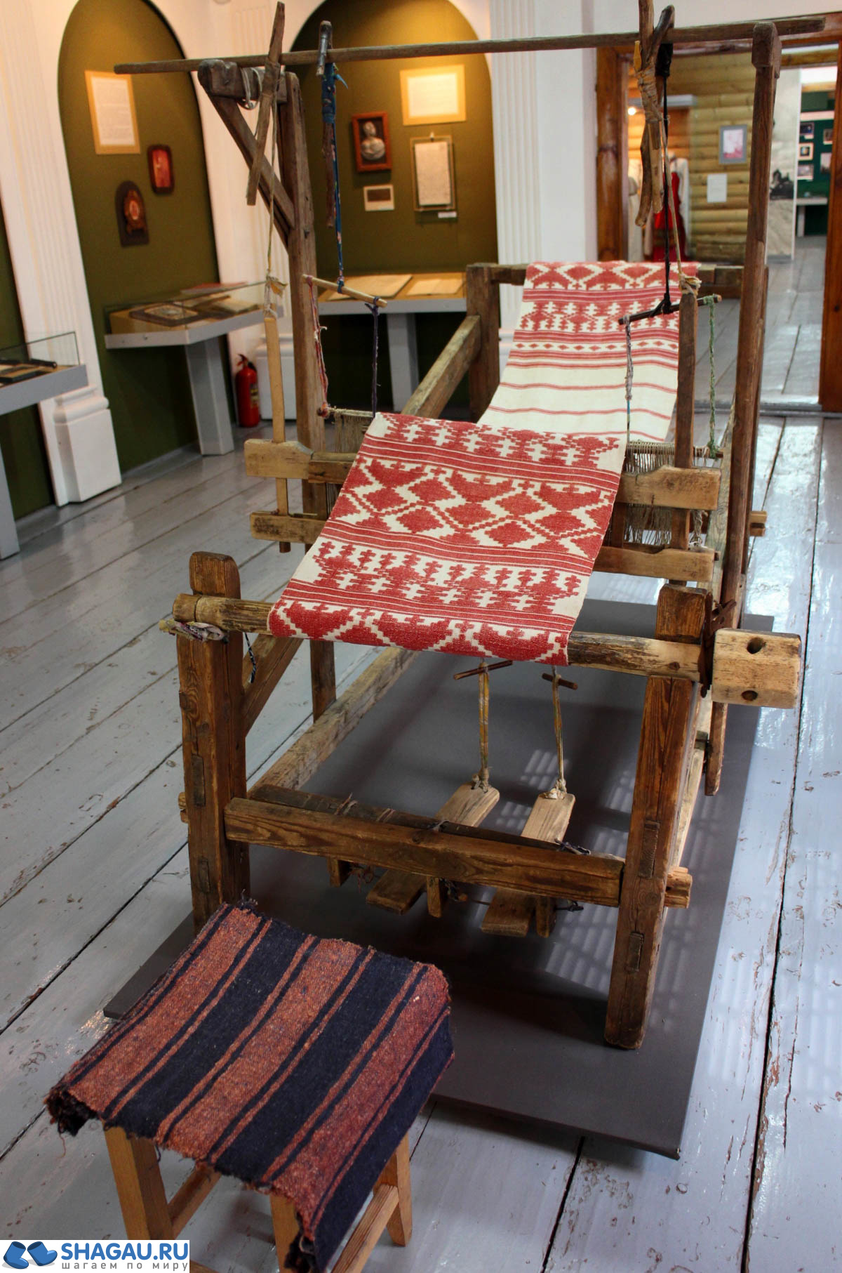 Далее перед нами предметы крестьянского быта XIX-XX вв. В центре ткацкий станок.