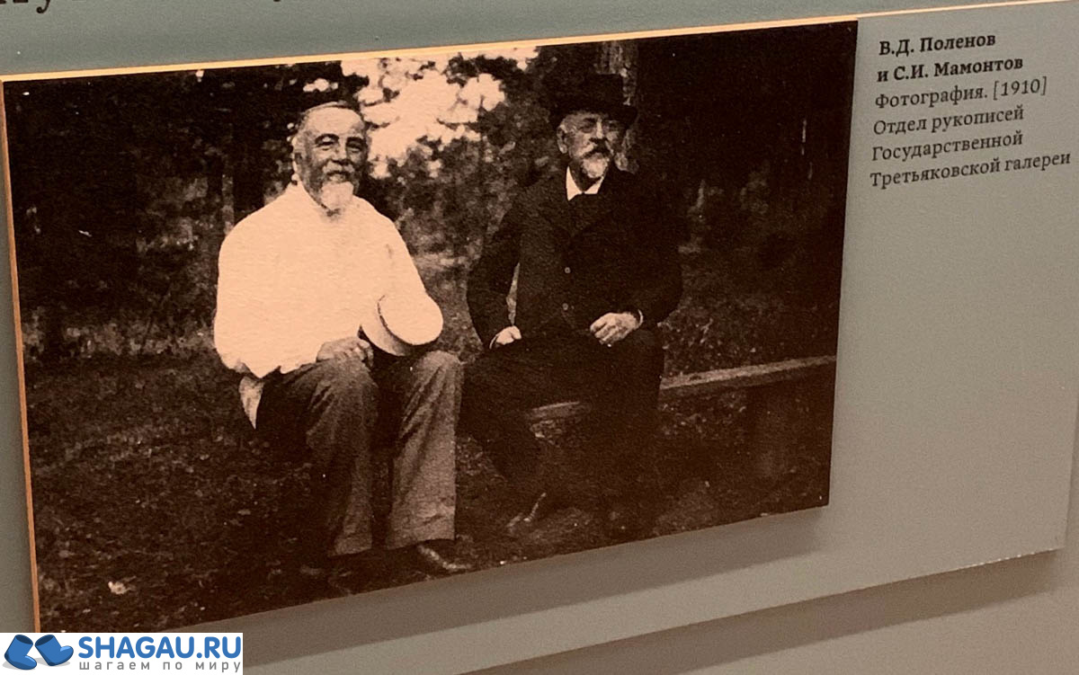 Василий Дмитриевич Поленов был удивительно разносторонне развитым человеком. Кроме того, что он был величайшим художником своего времени, он писал музыку, создавал архитектурные проекты, оформлял театральные постановки, преподавал живопись. В год, когда В. Д. Поленов окончил Академию художеств, он получил еще и диплом юриста. Если углубиться в историю его семьи, все это не кажется удивительным, так как его прадеда архитектора Н. А. Льво-ва в свое время называли «русским Леонардо да Винчи» за талантливую деятельность в самых разных областях науки и искусства. После окончания Академии художеств, где он учился вместе с И. Е. Репиным, Поленов отправился в заграничную поездку по Европе. В Риме он познакомился с С. И. Мамонтовым, который сплотил выдающихся творческих людей своего времени. В его усадьбе Абрамцево жили и творили самые талантливые личности. Поленов был одним из близ-ких друзей семьи Мамонтовых, позже после брака Василия Дмитриевича эти две семьи еще и породнились. С созданием собственной семьи В. Д. Поленов пришел к тому, что ему необходимо свое «место силы», усадьба на лоне природы, где он бы мог свободно работать. Так он приобрел имение в Тульской области на берегу реки Оки, которое сейчас нам . Я была там несколько лет назад и была очарована как удивительно живописным местом, так и необычной архитектурой главного дома и усадебных построек, которые были выполнены по проекту художника. Вот где в полной мере проявился архитектурный талант В. Д. Поленова. Об основных этапах биографии художника на выставке можно прочитать на специальных стендах.